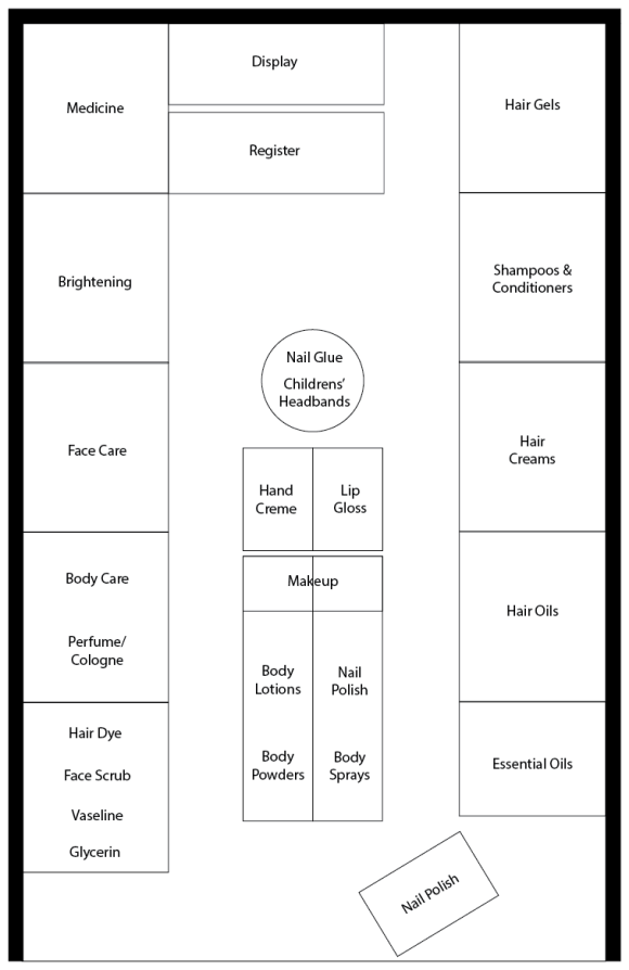 With so many products needing to be organized, I designed a Merchandising Layout Diagram to help improve the layout of the store.