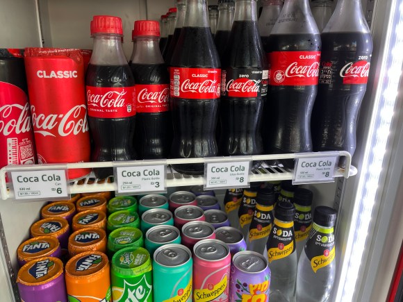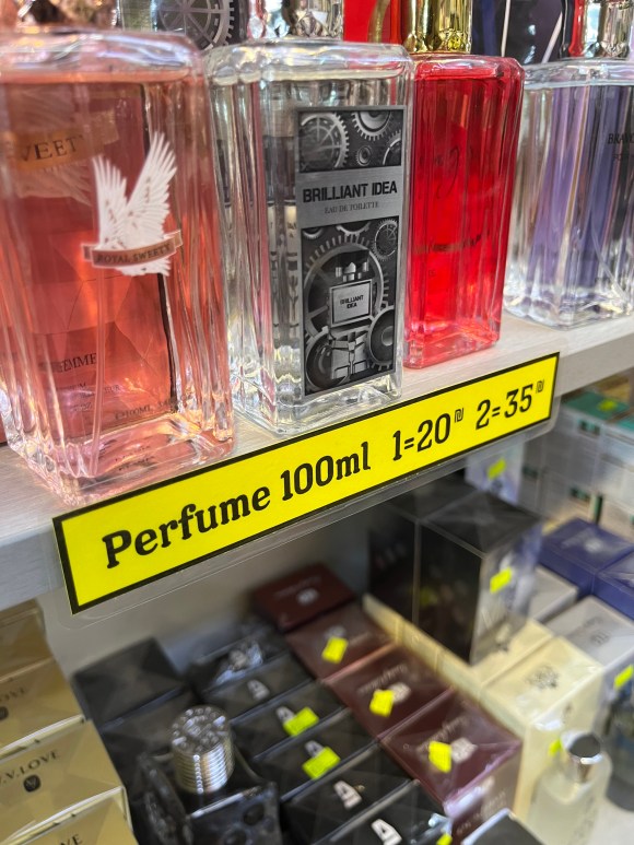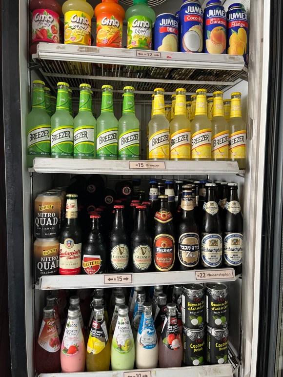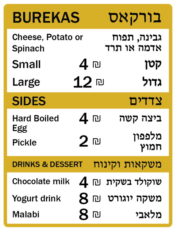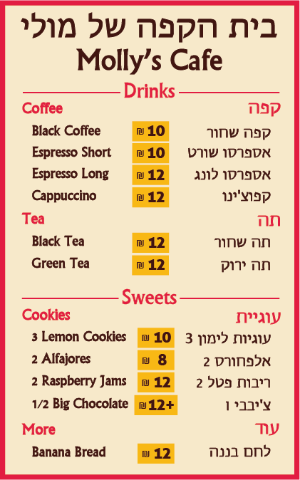 He also designed an overhead menu and handheld menus in two languages, and also installed price signs for my beverage fridges so customers don’t have to ask how much prices are for drinks.